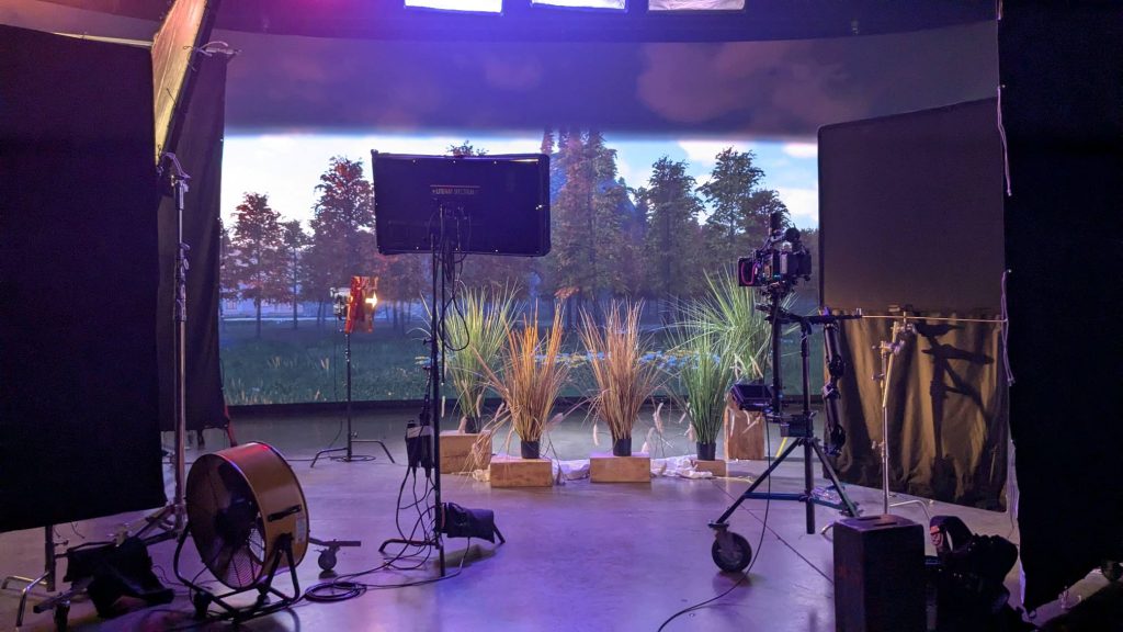 The second half of our day was lead by instructor Erik “Wolfie” Wolford featuring cinematography for lighting on a Virtual Production stage.  Starting with how to program and set up lights for the foreground real world elements to preventing light spill onto the wall and color matching.  How to marry the real world stage to the virtual world for a perfect shot.